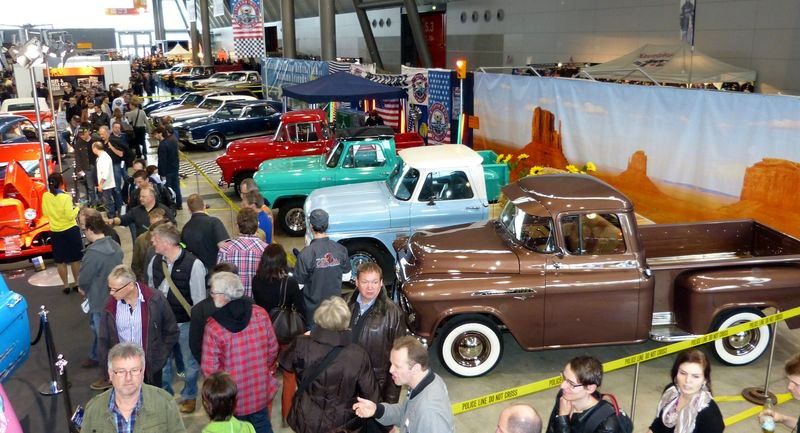 Die Halle 5 war diese mal fast vollständig in amerikanischer Hand, vertreten waren etliche Händler und auch ein großer Stand von Chrom & Flammen besetzt mit Privatfahrzeugen war vertreten, so dass ca. zwei drittel der Halle mit Ami s belegt war! Es wurde mit rund 77.000 Besuchern ein neuer Rekord aufgestellt! Es waren 1.308 Aussteller mit rund 3.000 Fahrzeugen beteiligt. Der Flächenbedarf nimmt inzwischen das gesamte verfügbare Messegelände mit 100.000 m² plus der Messepiaza in Anspruch. Es waren auch rund 700 Journalisten aus über 20 Ländern auf der Messe vertreten.